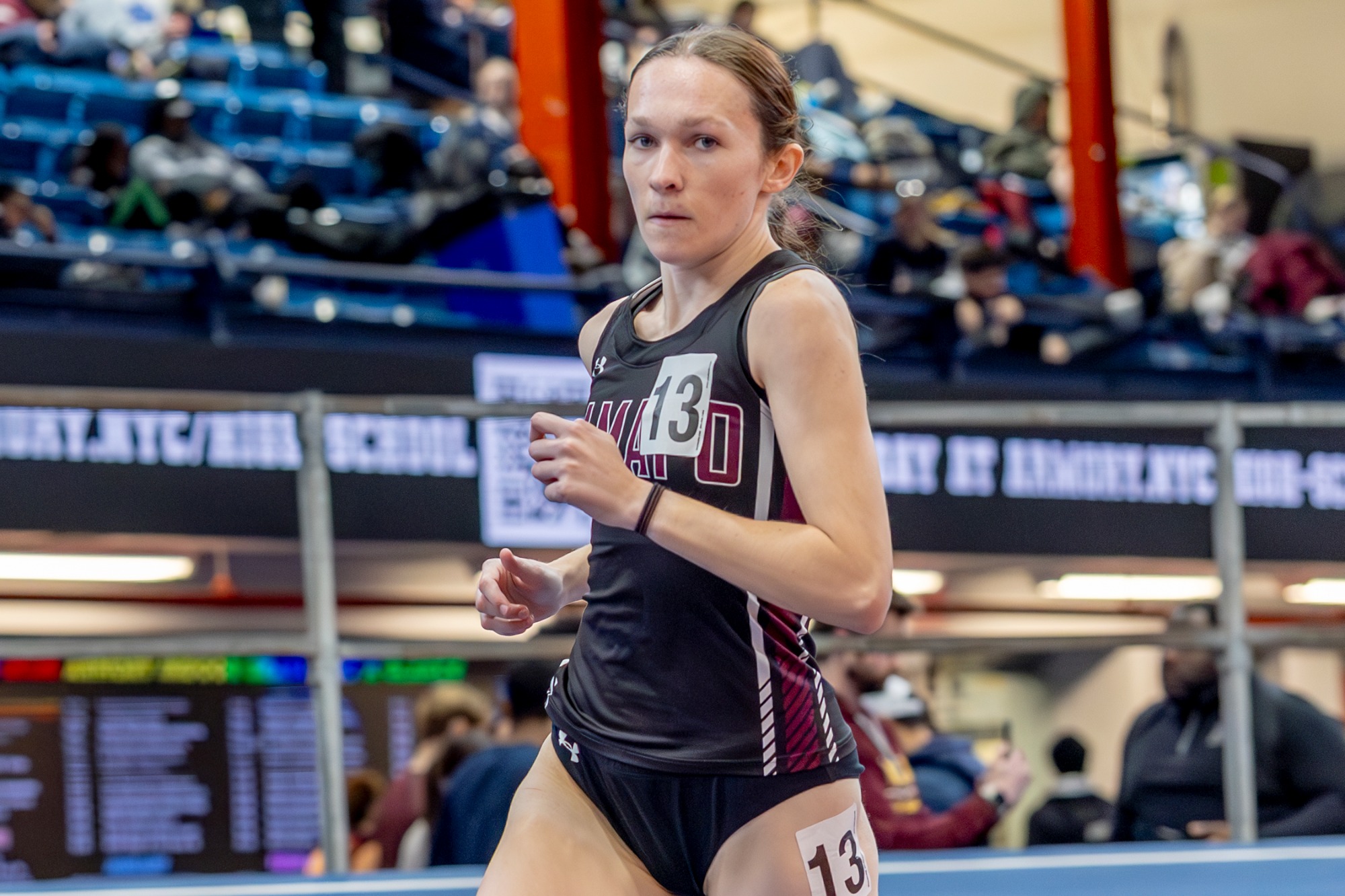 In the 100-meter dash, Dwah placed 2nd overall when she clocked in at 12.32 seconds while Kneppel finished in 8th place (12.63 seconds) and Yaskovic finished in 13th place (12.90 seconds). In the 200-meter dash, Dwah grabbed a 5th place finish in 25.46 seconds, which is 4th all-time at Ramapo. Yaskovic was right behind her in 6th place in 25.63 seconds, which is 6th all-time at Ramapo. In the 400-meter dash,